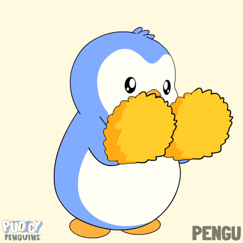 Fwog sostiene pompones con ambas manos y se mueve de un lado a otro con energía. Su actitud es entusiasta, mostrando alegría en cada movimiento. Realiza saltos suaves y rítmicos, dando la impresión de animar un evento festivo. La energía es contagiosa, y la rana mantiene una sonrisa amplia, proyectando diversión y entusiasmo. La animación repite la secuencia de saltos y movimientos, creando un bucle dinámico que resalta su espíritu festivo. |